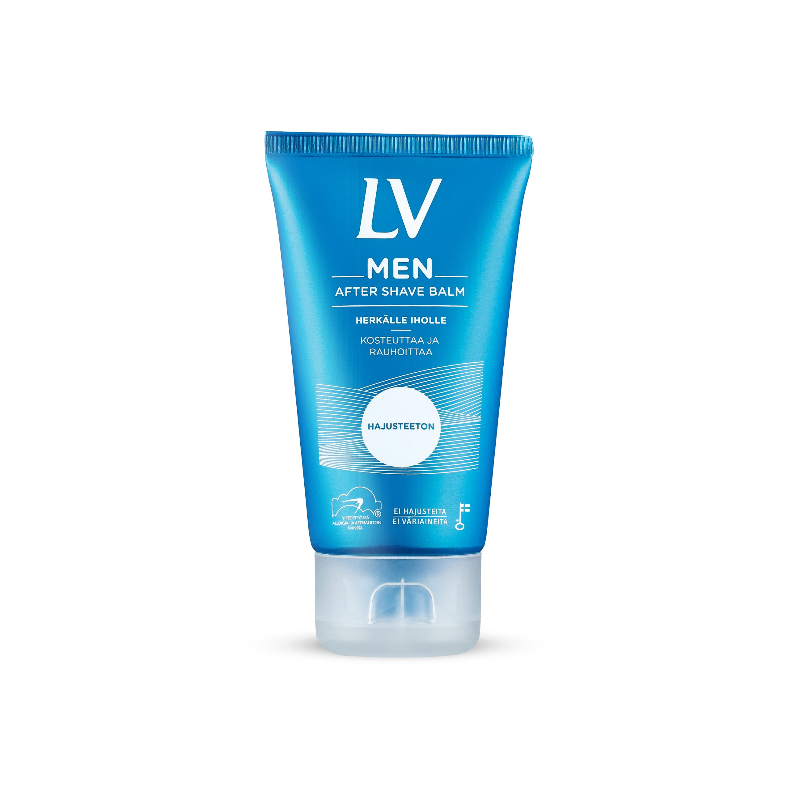 LV Men Aftershave Balm on kevyt, nopeasti imeytyvä geelivoide, joka rauhoittaa ja pehmentää ihoa ja kosteuttaa sitä pitkäkestoisesti. Voide sopii hyvin käytettäväksi parranajon jälkeen, sillä se sisältää allatoiinia ja bisabololia, jotka rauhoittavat ja pehmentävät ihoa.